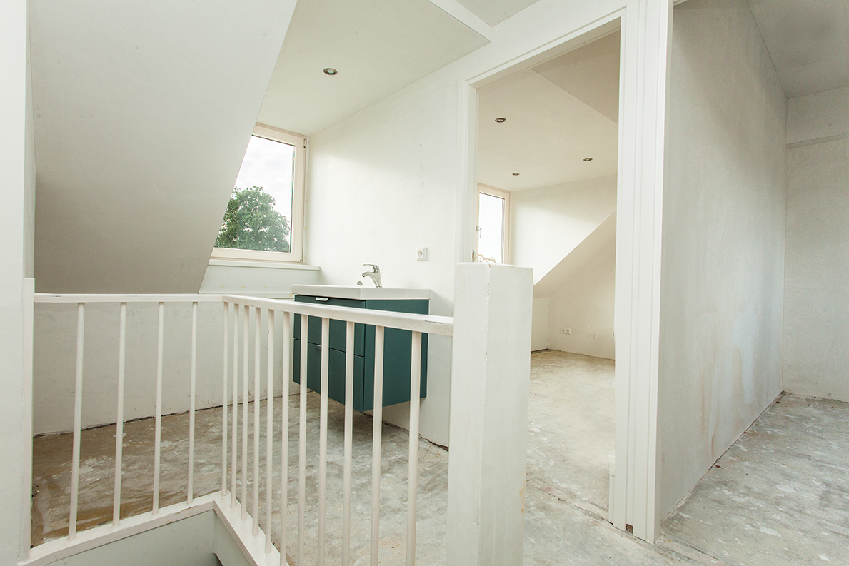 Zo zijn er twee royale slaapkamers ontstaan waarbij op de overloop een wastafelelement is geplaatst.